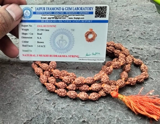 3 Mukhi Rudraksha Mala - 100% Natural, Lab Certified